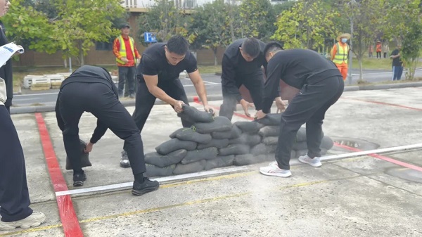 本次大赛汇聚了集团旗下9家成员单位,72名员工同场竞技。比赛设置“搬运沙袋”“抢救伤员”“水带连接”“灭火比赛”四个实战项目,全面模拟各类安全应急突发场景,考验参赛队伍的协同配合与应急处置能力。