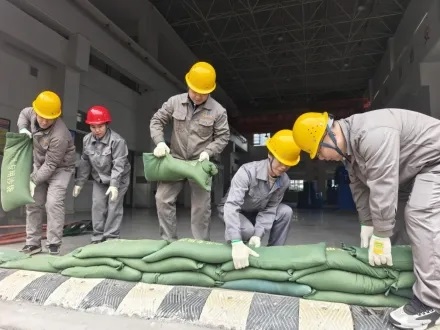 青狮潭公司在思安江水电站开展水淹厂房应急处置专项演练,演练模拟河道水位超警戒、厂房面临进水风险的实战场景。抢险人员快速构筑防水沙袋屏障、启动抽水泵强排积水、切断危险区域电源、对重要设备进行防水防护。演练全程紧张有序、响应迅速,有效检验预案实用性,提升人员应急实操与协同处置能力,为电站安全度汛奠定坚实基础。